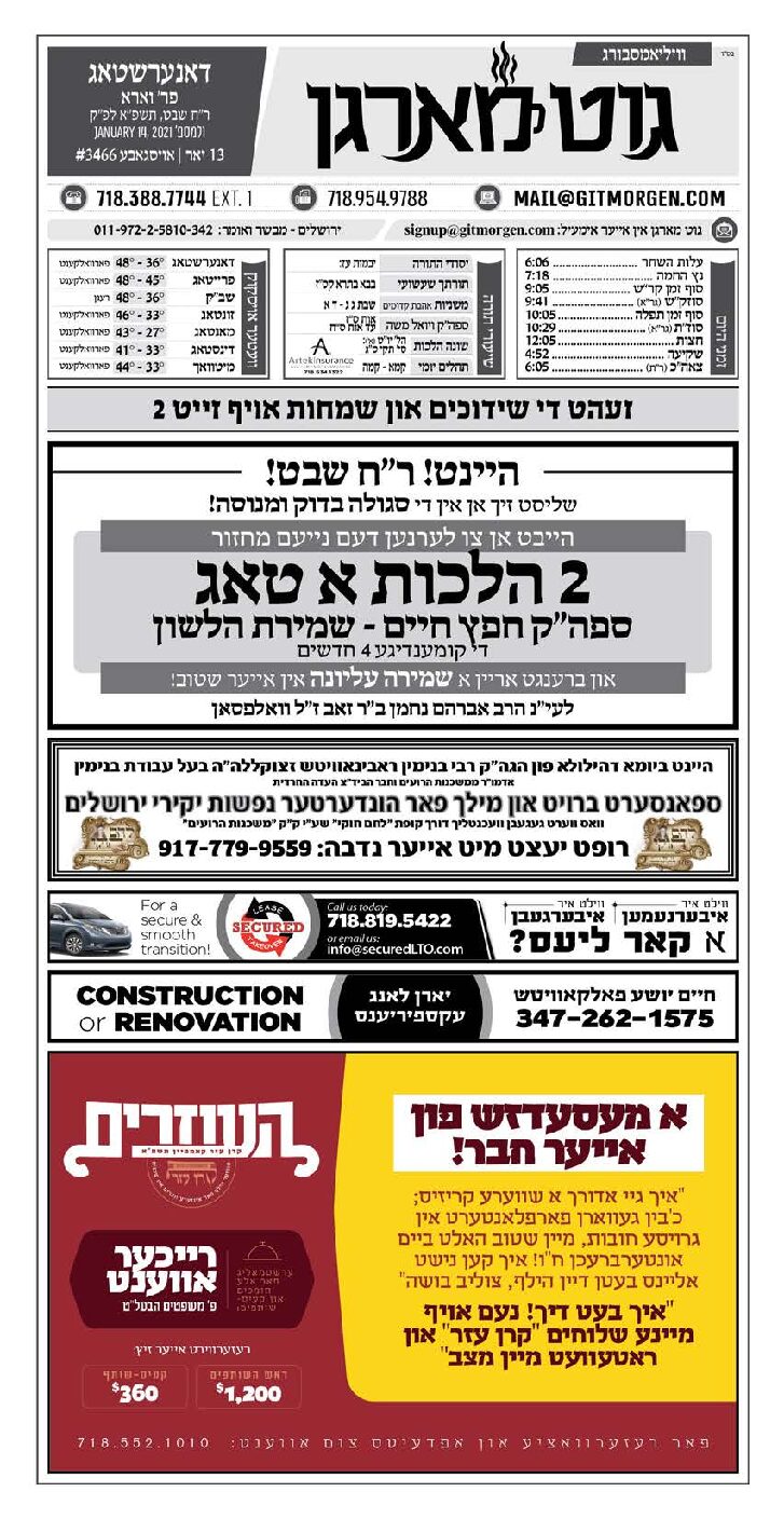 Akeres Habayis Thursday 01.14.21