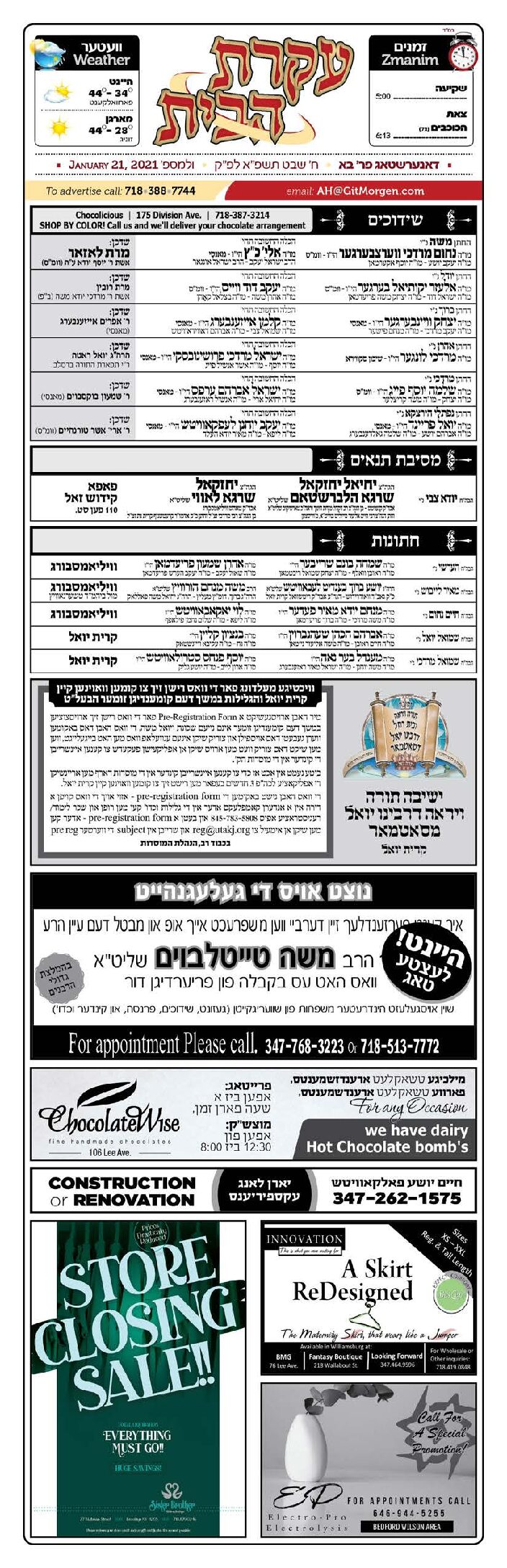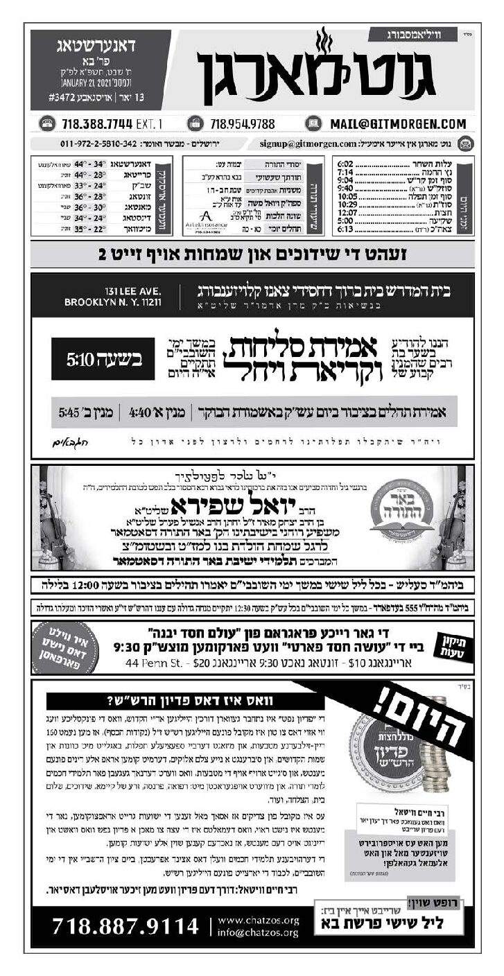 Akeres Habayis Thursday 01.21.21