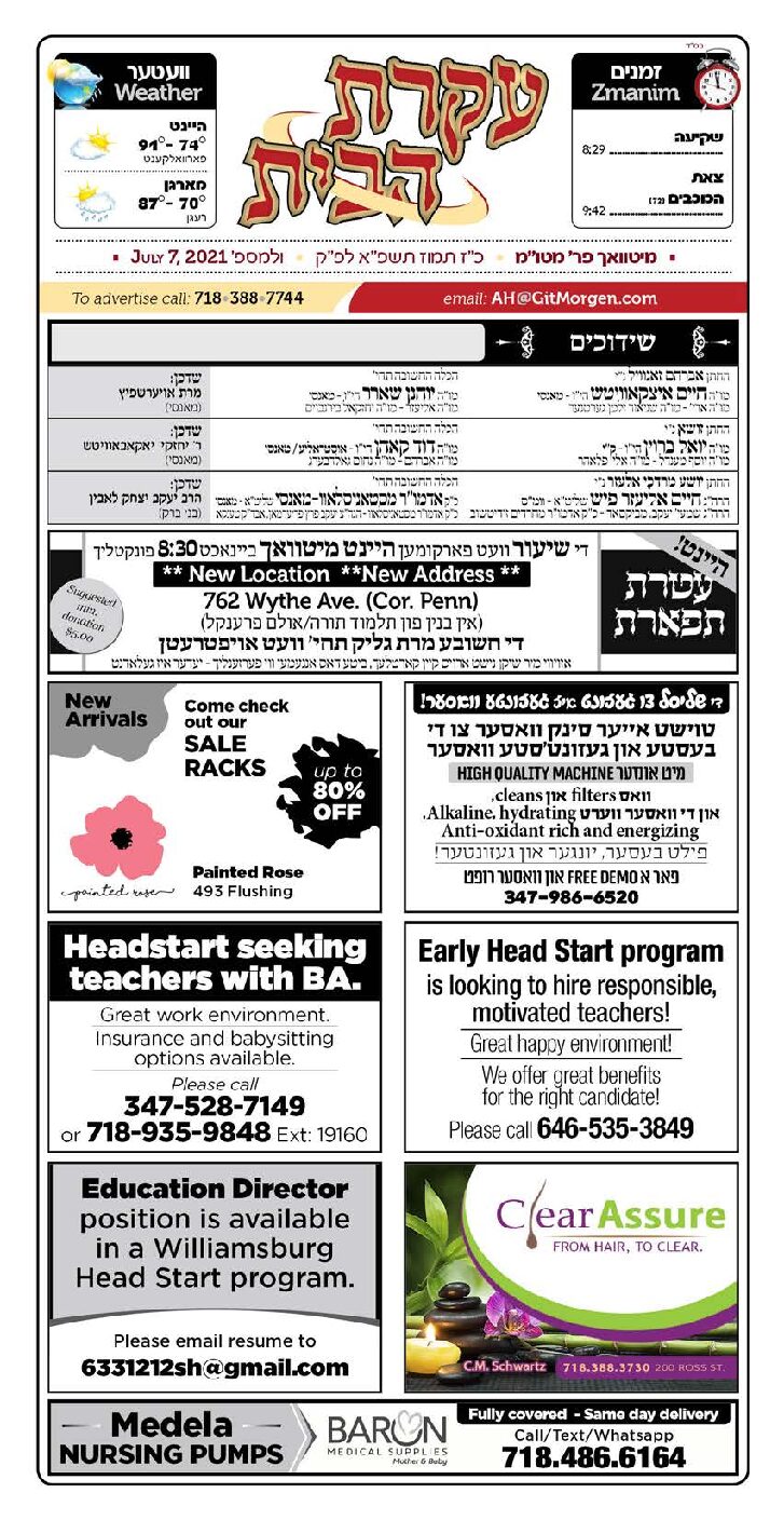 Akeres Habayis Wednesday 07.07.21