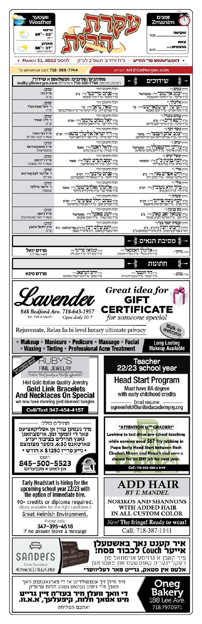 Akeres Habayis Thursday 03.31.22