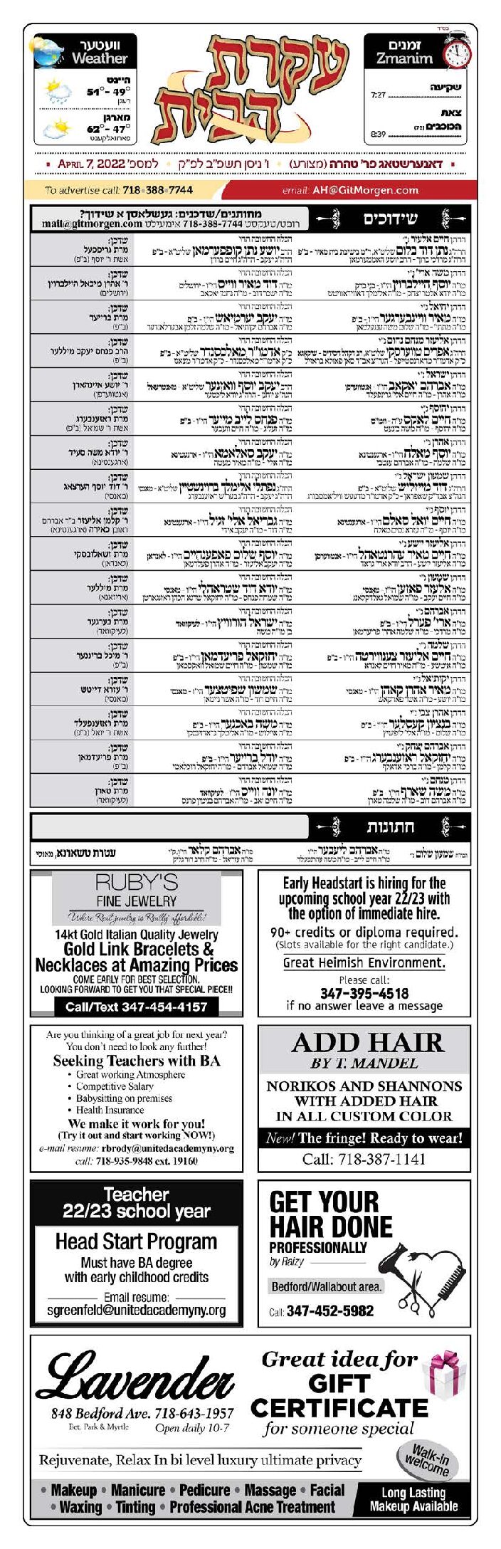 Akeres Habayis Thursday 04.07.22