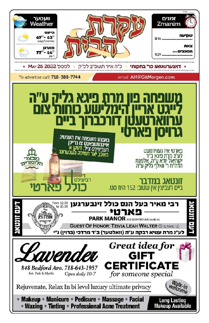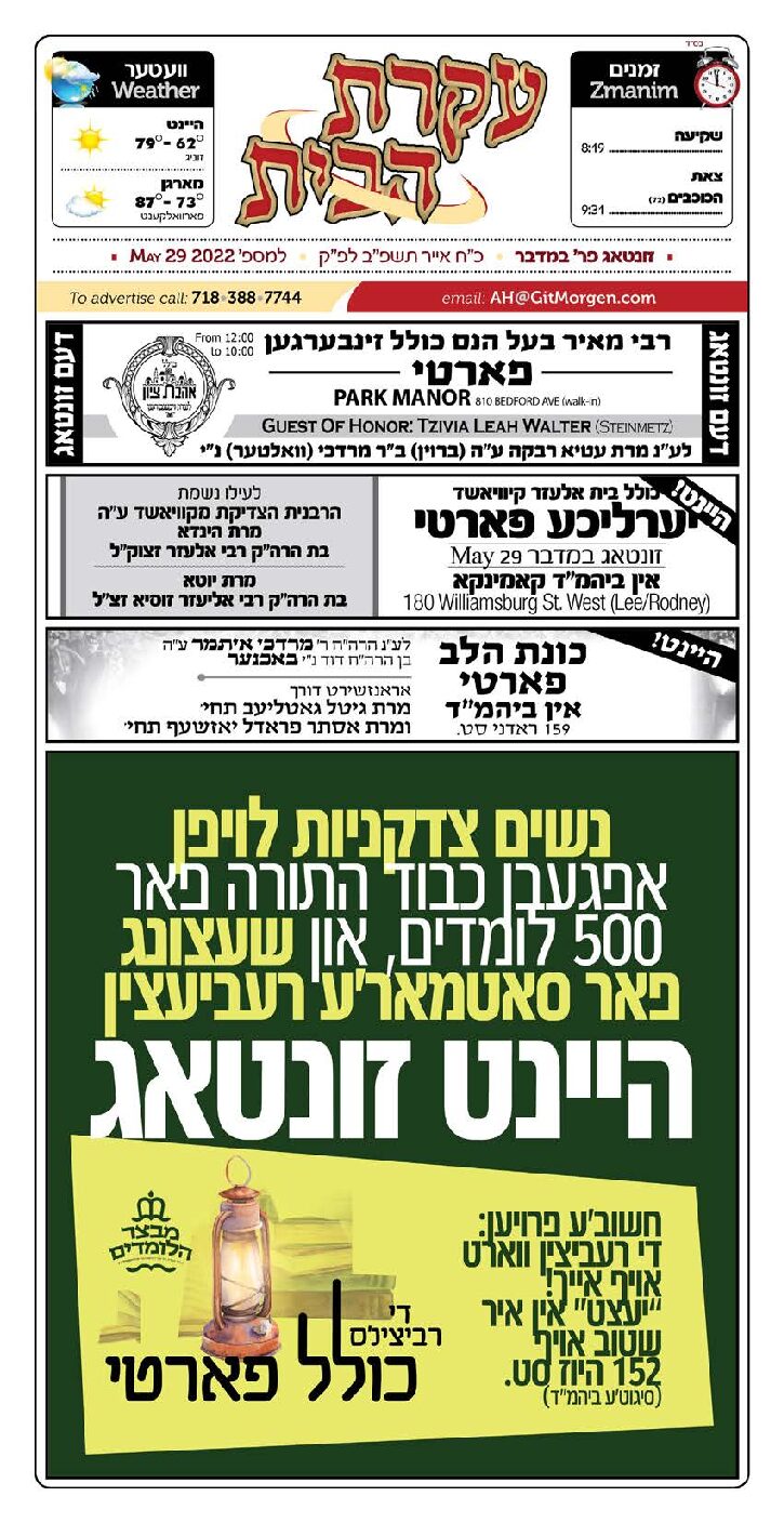 Akeres Habayis Sunday 05.29.22