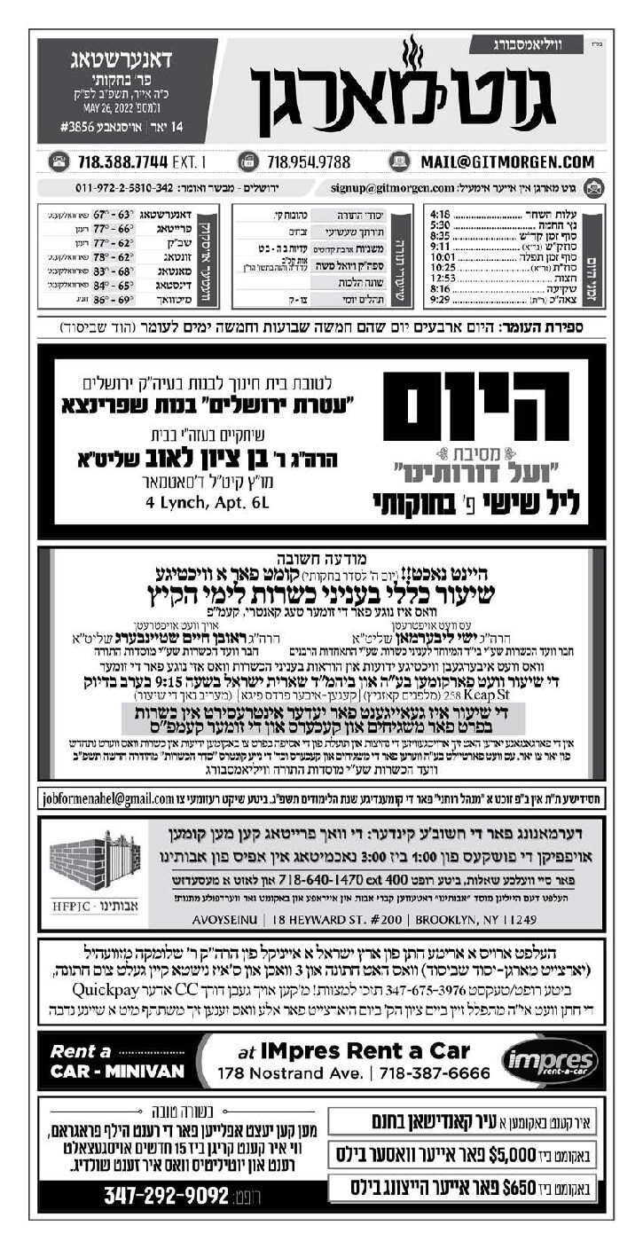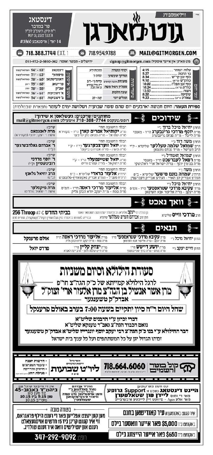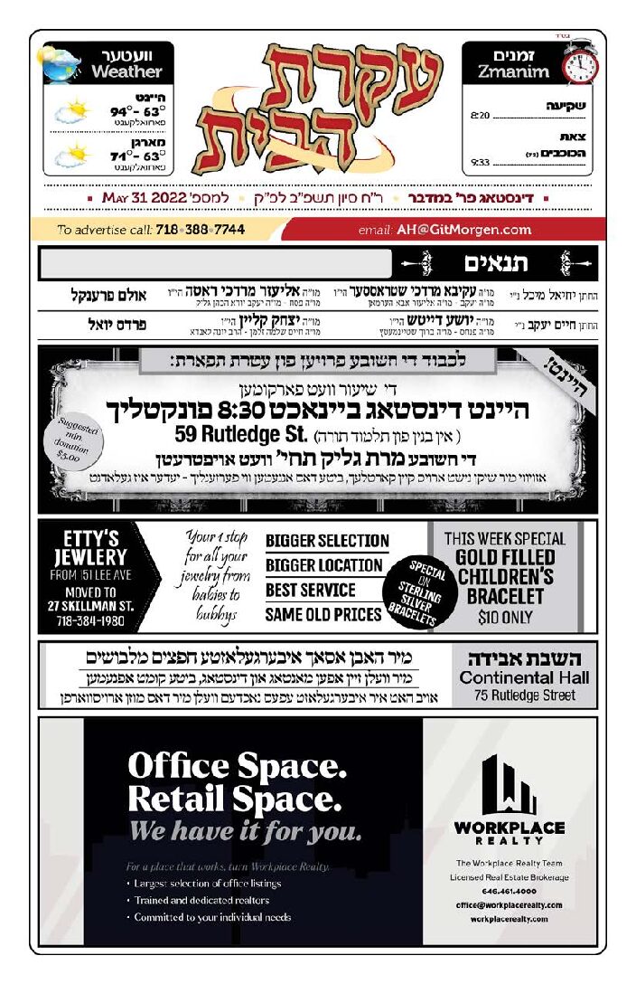 Akeres Habayis Tuesday 05.31.22