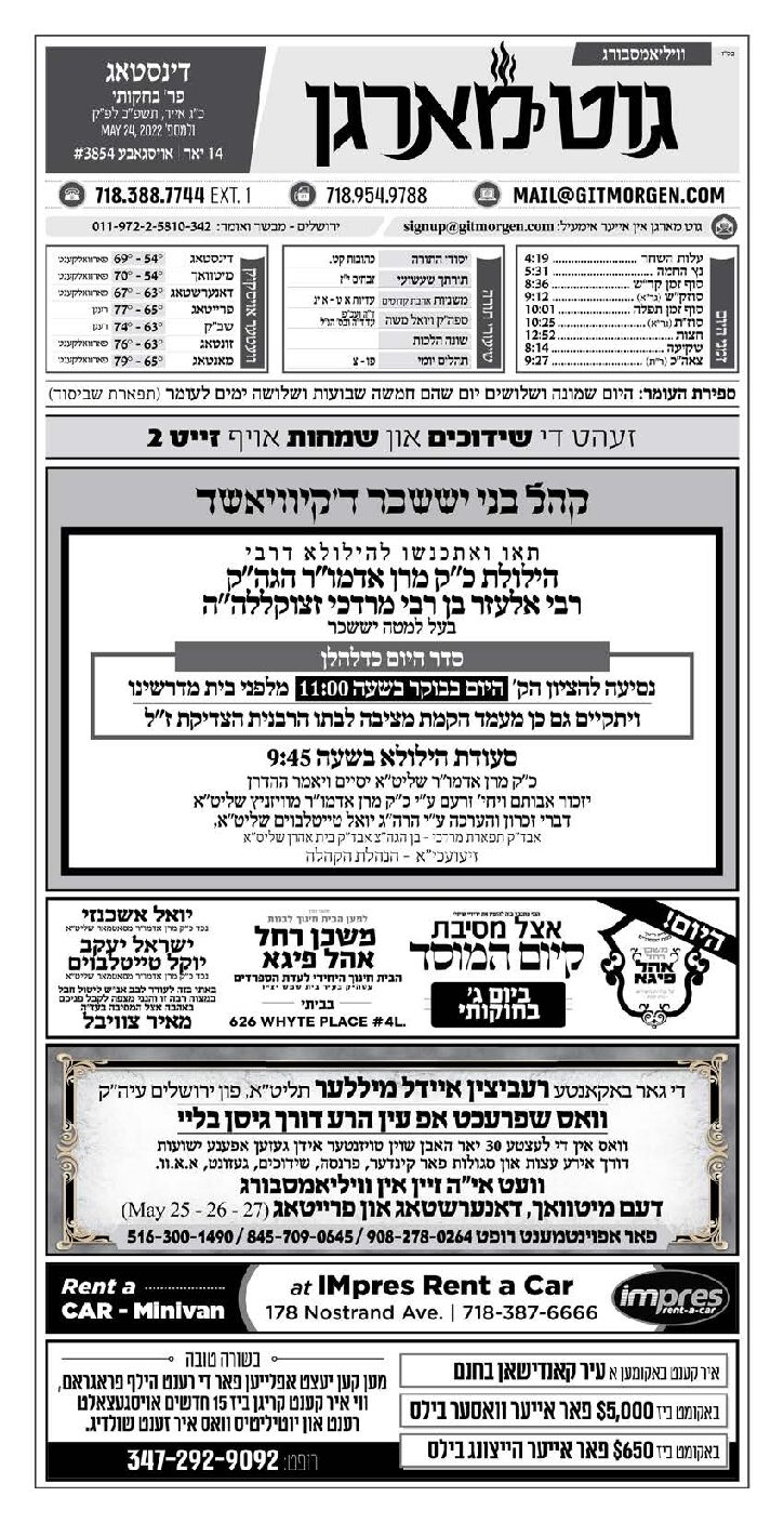 Akeres Habayis Tuesday 05.24.22