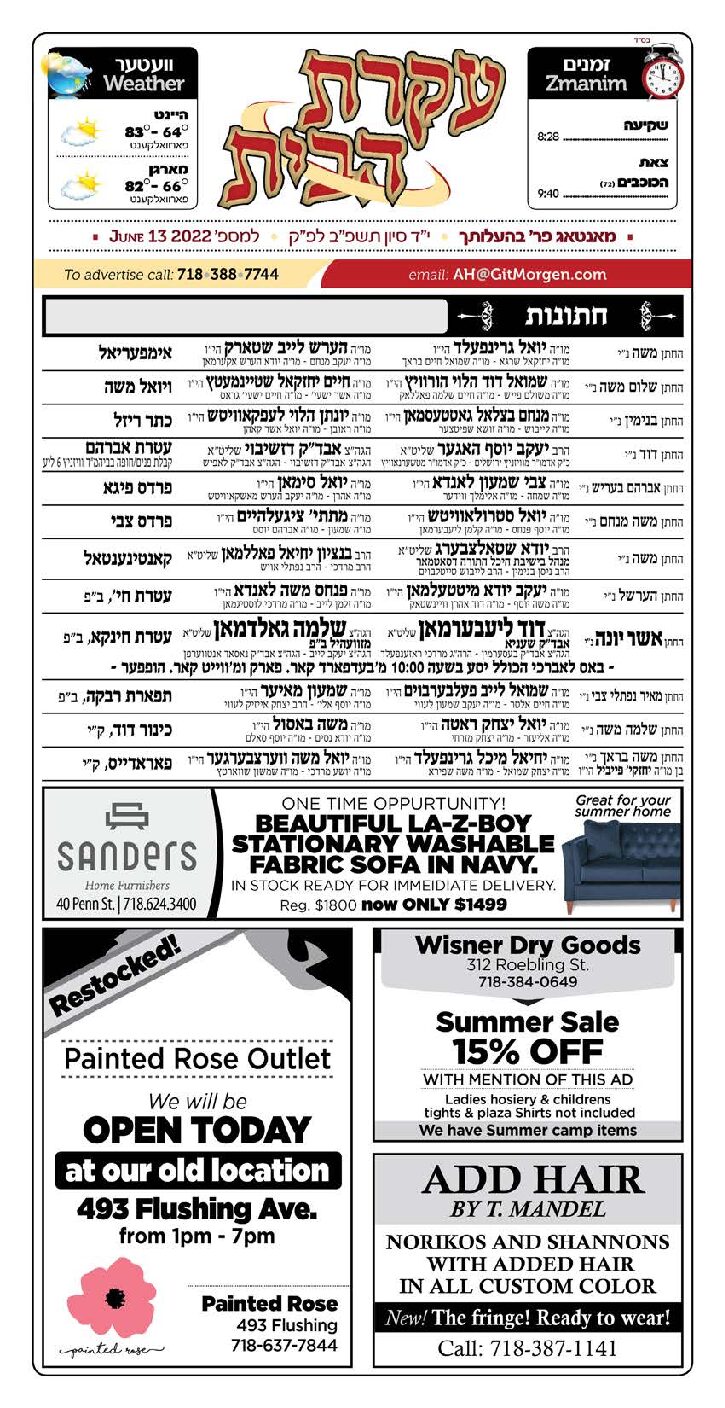 Akeres Habayis Monday 06.13.22
