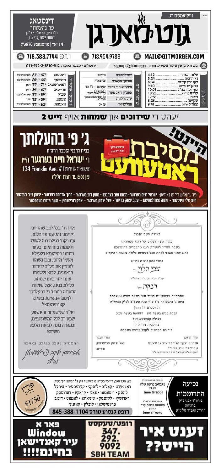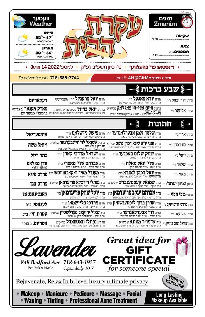 Akeres Habayis Tuesday 06.14.22