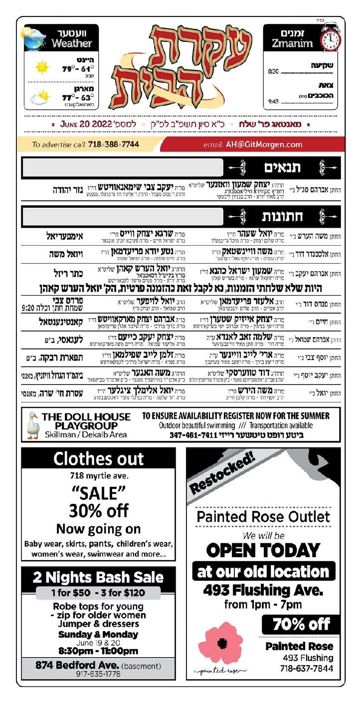 Akeres Habayis Monday 06.20.22