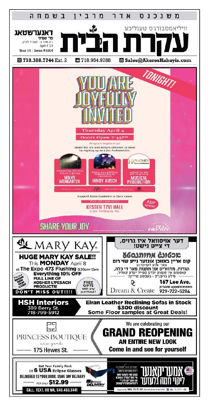 Akeres Habayis Thursday 04.04.24