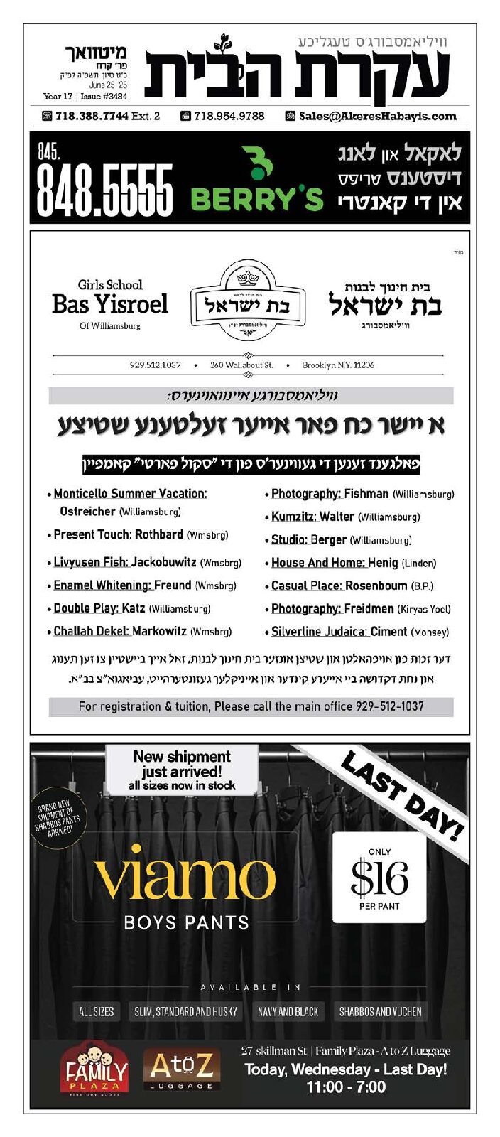 Akeres Habayis Thursday 06.26.25