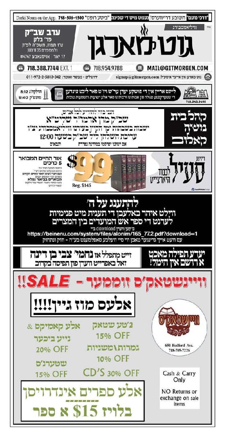Akeres Habayis Thursday 07.10.25