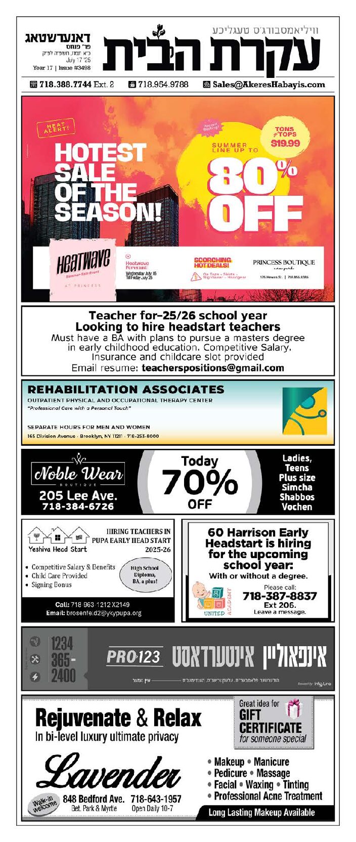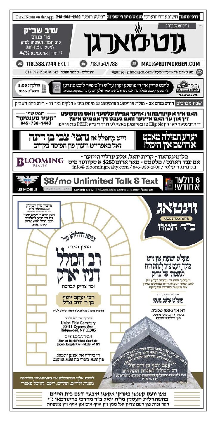 Akeres Habayis Thursday 07.17.25
