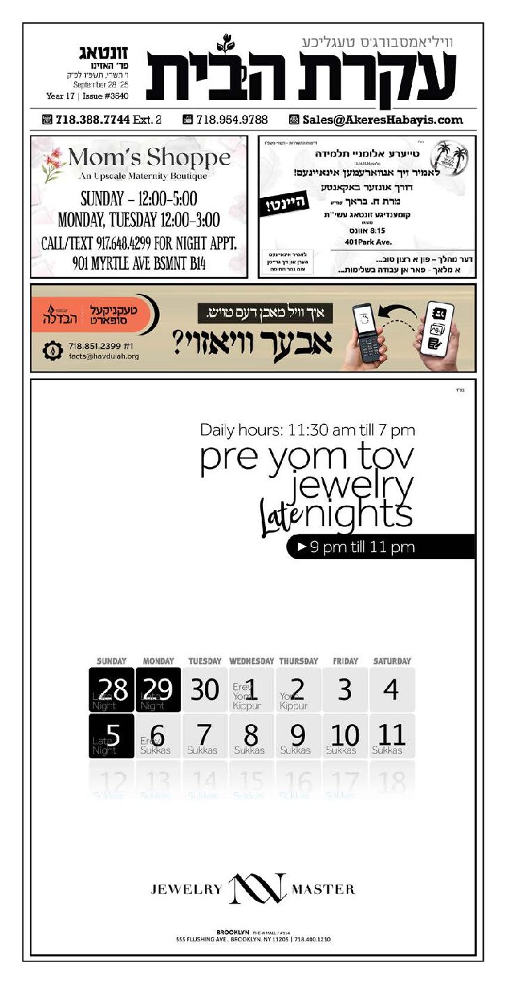 Akeres Habayis Sunday 09.28.25