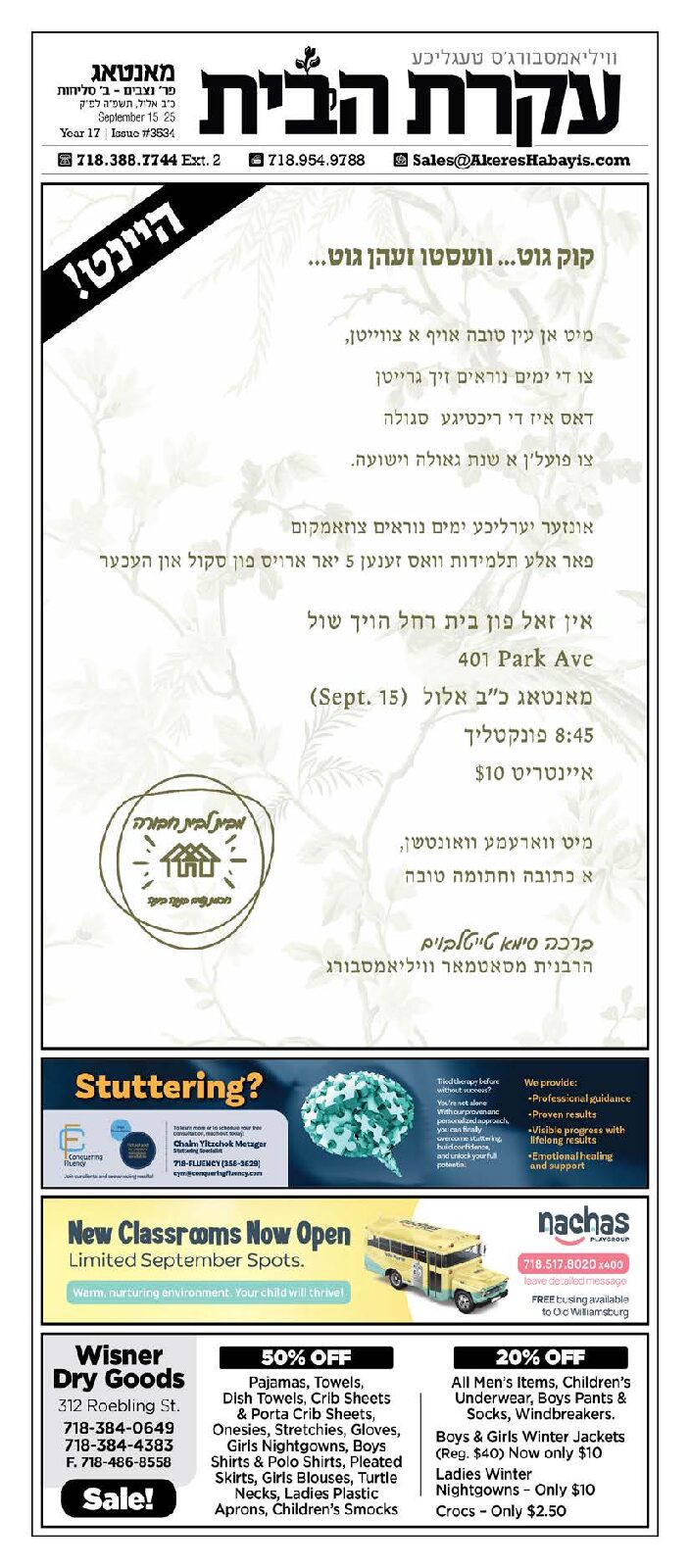 Akeres Habayis Monday 09.15.25