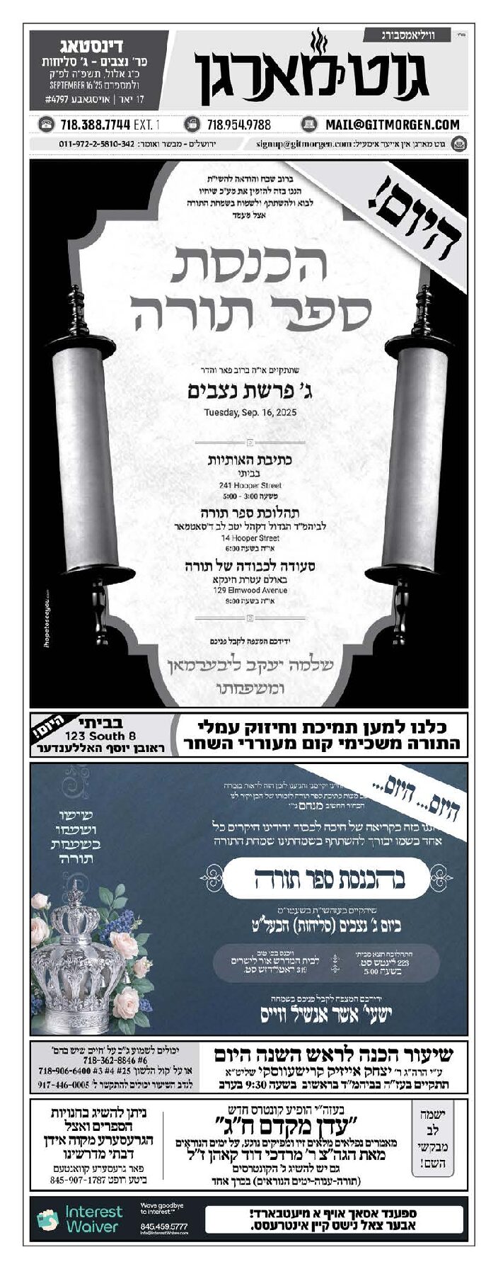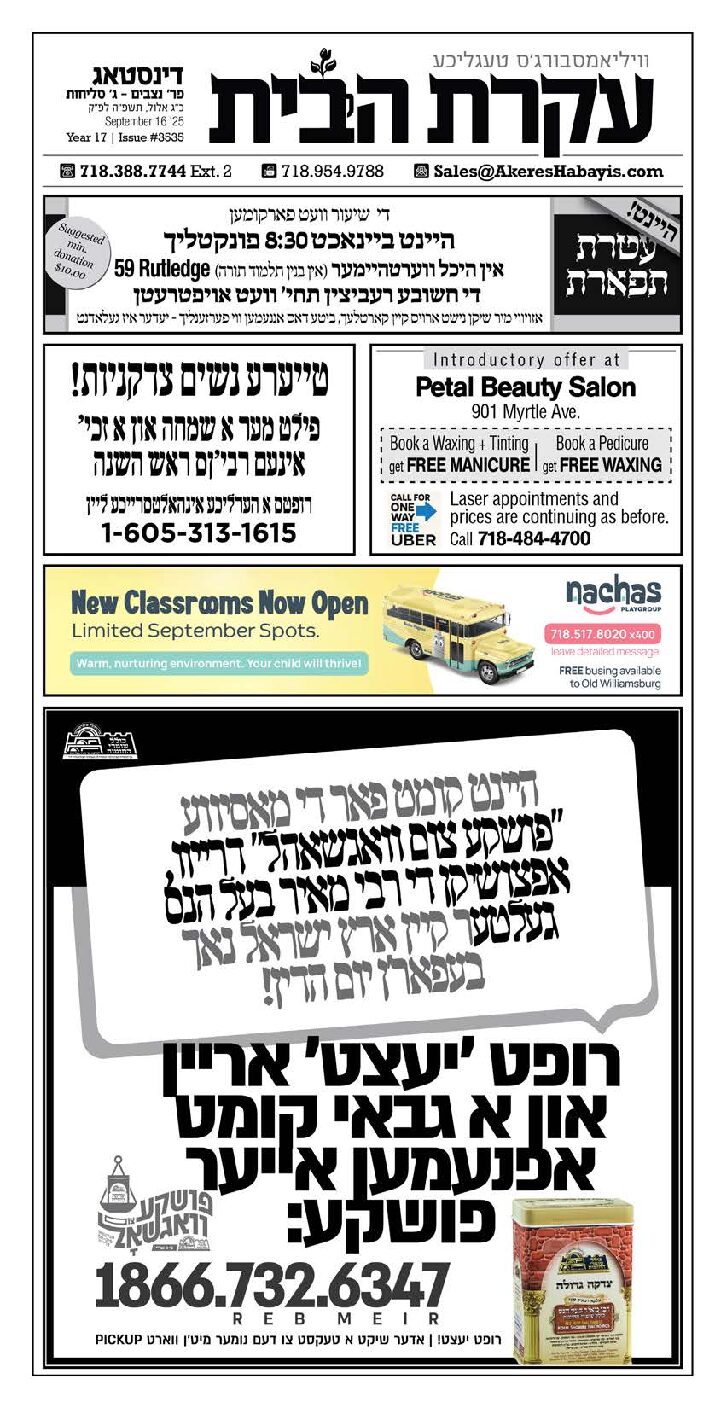 Akeres Habayis Tuesday 09.16.25