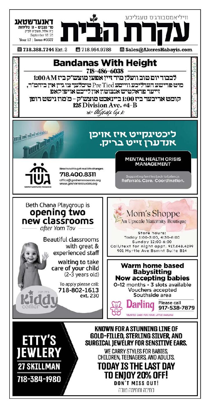 Akeres Habayis Thursday 09.18.25