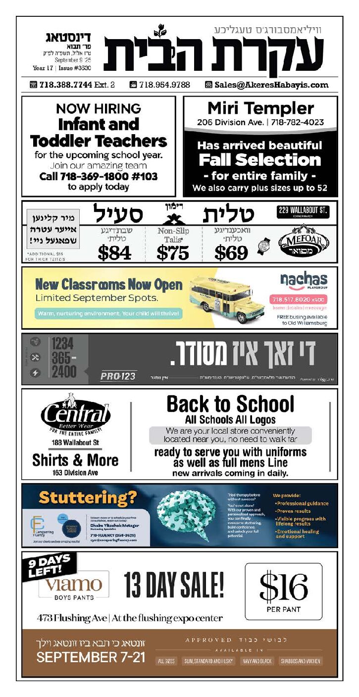 Akeres Habayis Tuesday 09.09.25