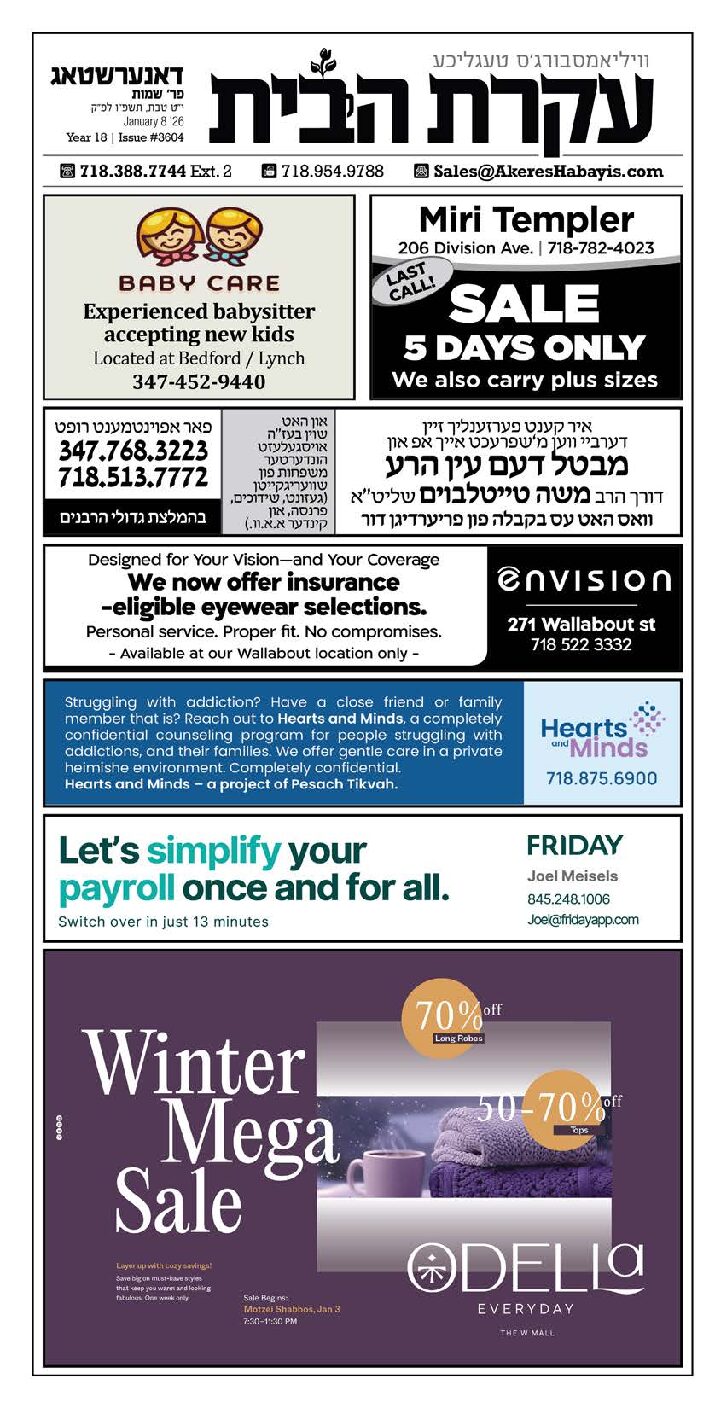Akeres Habayis Thursday 01.08.26