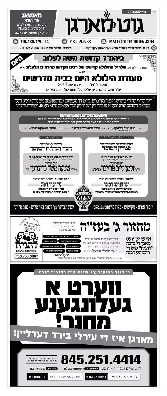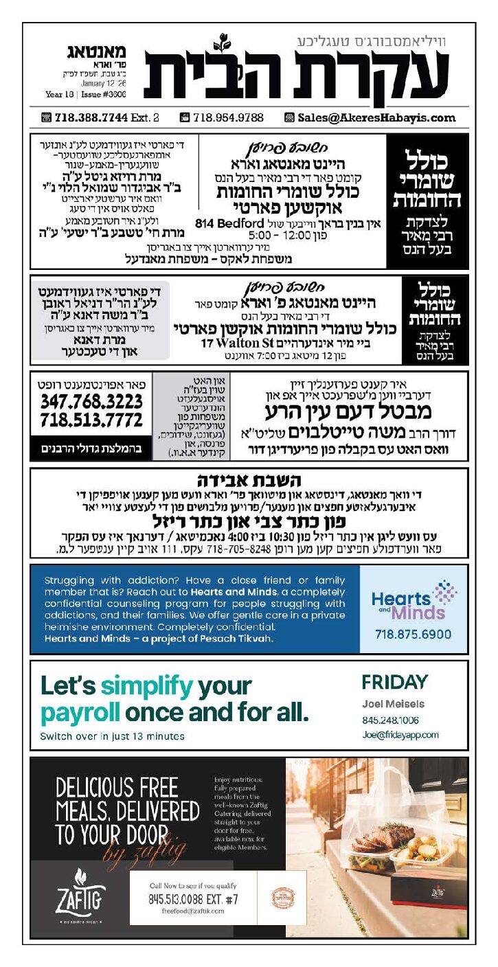 Akeres Habayis Monday 01.12.26