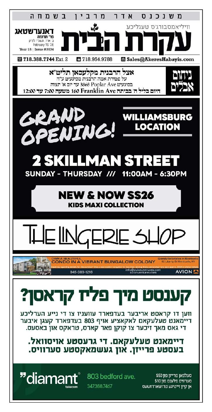 Akeres Habayis Thursday 02.19.26
