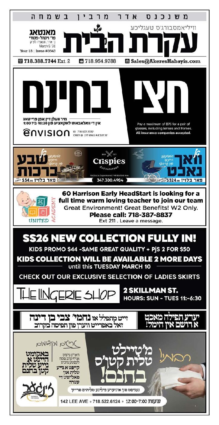 Akeres Habayis Monday 03.09.26