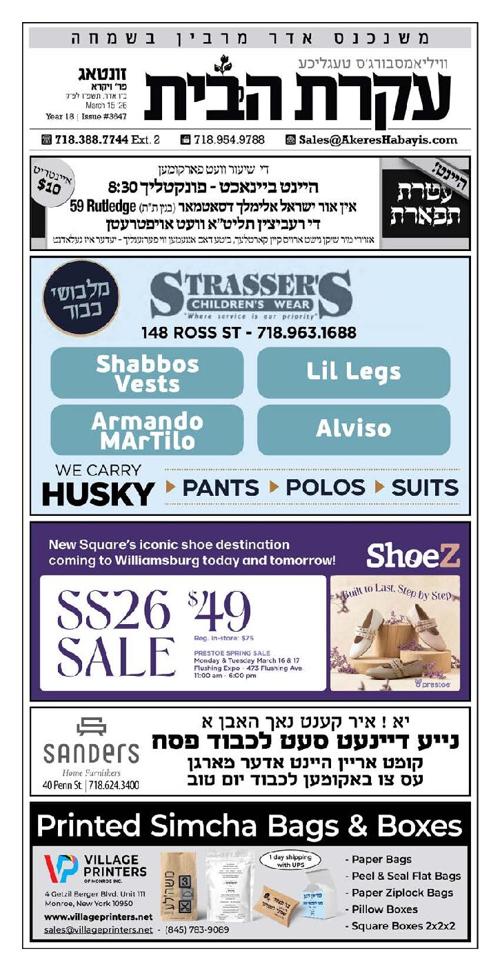 Akeres Habayis Sunday 03.15.26