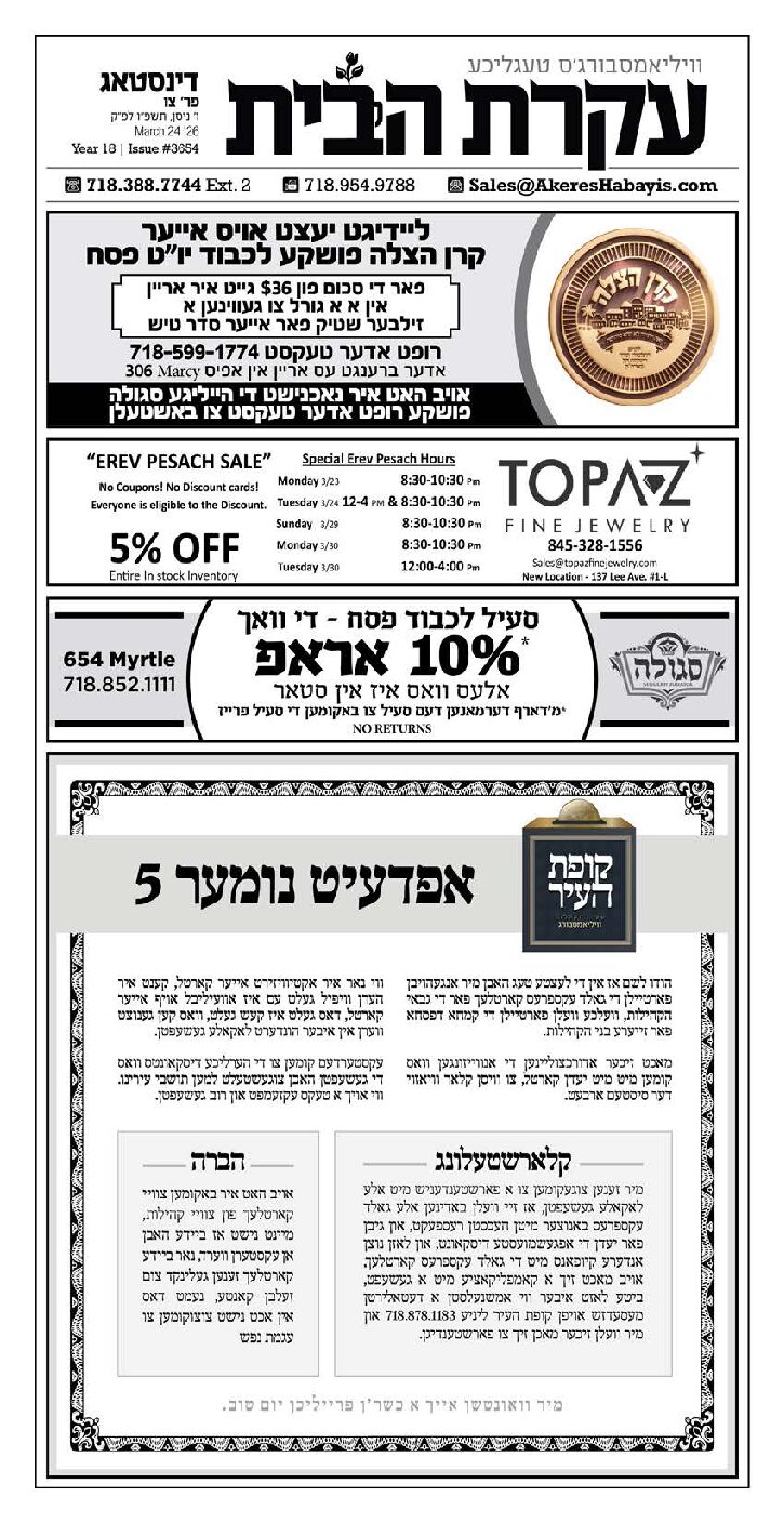 Akeres Habayis Tuesday 03.24.26
