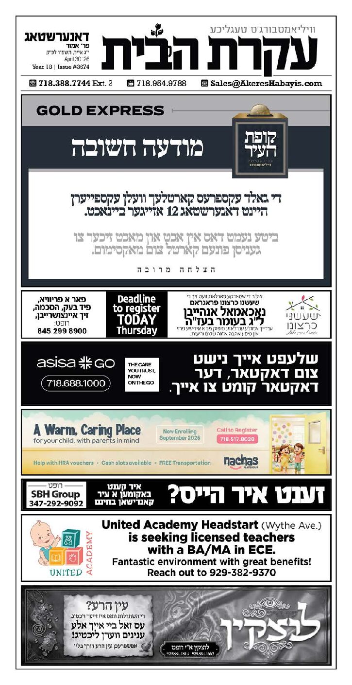 Akeres Habayis Thursday 04.30.26